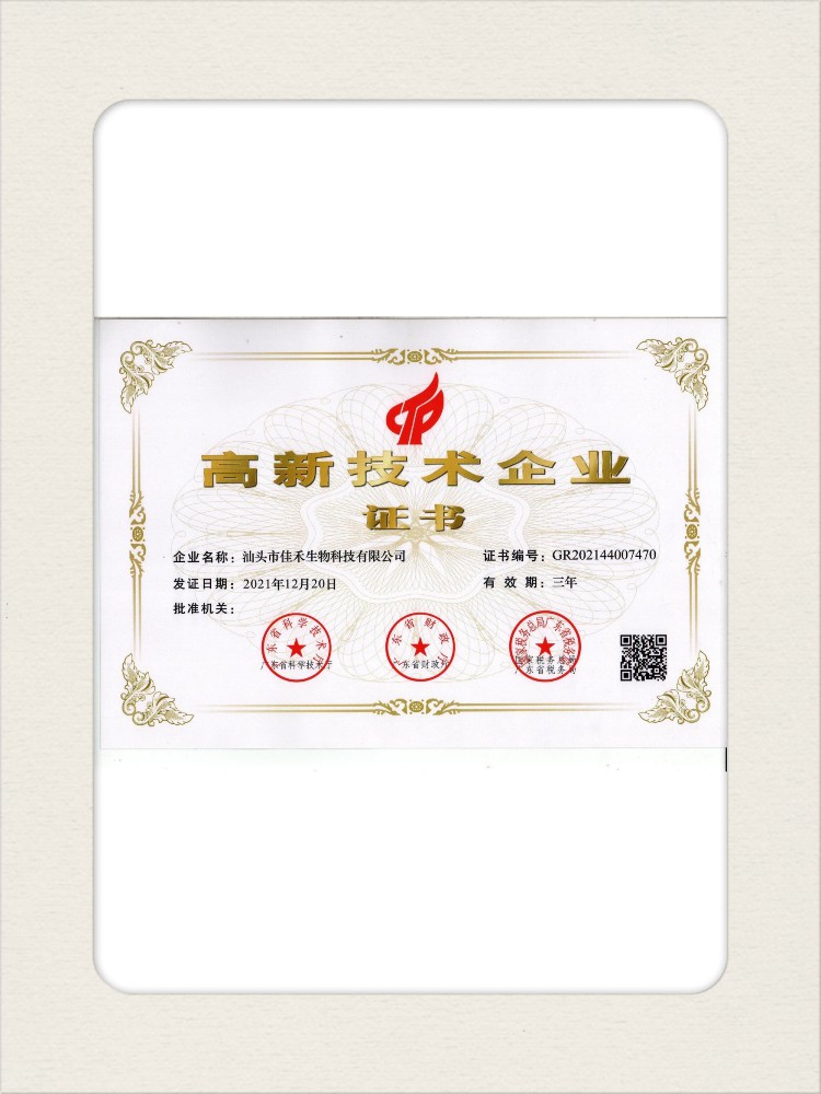 汕頭佳禾生物科技有限公司是一家致力于氨基酸及其衍生物研發(fā)、生產(chǎn)和銷售的國家高新技術(shù)企業(yè),先后通過了國家藥品GMP認(rèn)證,ISO9001質(zhì)量體系認(rèn)證、ISO14001環(huán)境管理體系認(rèn)證。目前,公司擁有“廣東省專精特新中小企業(yè)”、“廣東省氨基酸產(chǎn)品工程技術(shù)研究中心”、“汕頭市生物發(fā)酵工程技術(shù)研究開發(fā)中心”、“汕頭市知識(shí)產(chǎn)權(quán)優(yōu)勢企業(yè)”、“多項(xiàng)國家發(fā)明專利”、“廣東省守合同重信用企業(yè)”等多項(xiàng)資質(zhì)和榮譽(yù),旗下“佳禾牌”系列產(chǎn)品已成為原料藥行業(yè)知名品牌。 新泰市佳禾生物科技有限公司成立于2012年8月,注冊(cè)資金2億元,公司位于山東泰安新泰市新汶工業(yè)園區(qū),是國 家級(jí)高新技術(shù)企業(yè)、山東省“專精特新”企業(yè)、山東省制造業(yè)單項(xiàng)冠軍企業(yè)、泰安市科技型中小企業(yè)、泰安市農(nóng)業(yè)產(chǎn)業(yè)化龍頭企業(yè)、中國生物發(fā)酵產(chǎn)業(yè)協(xié)會(huì)理事單位。